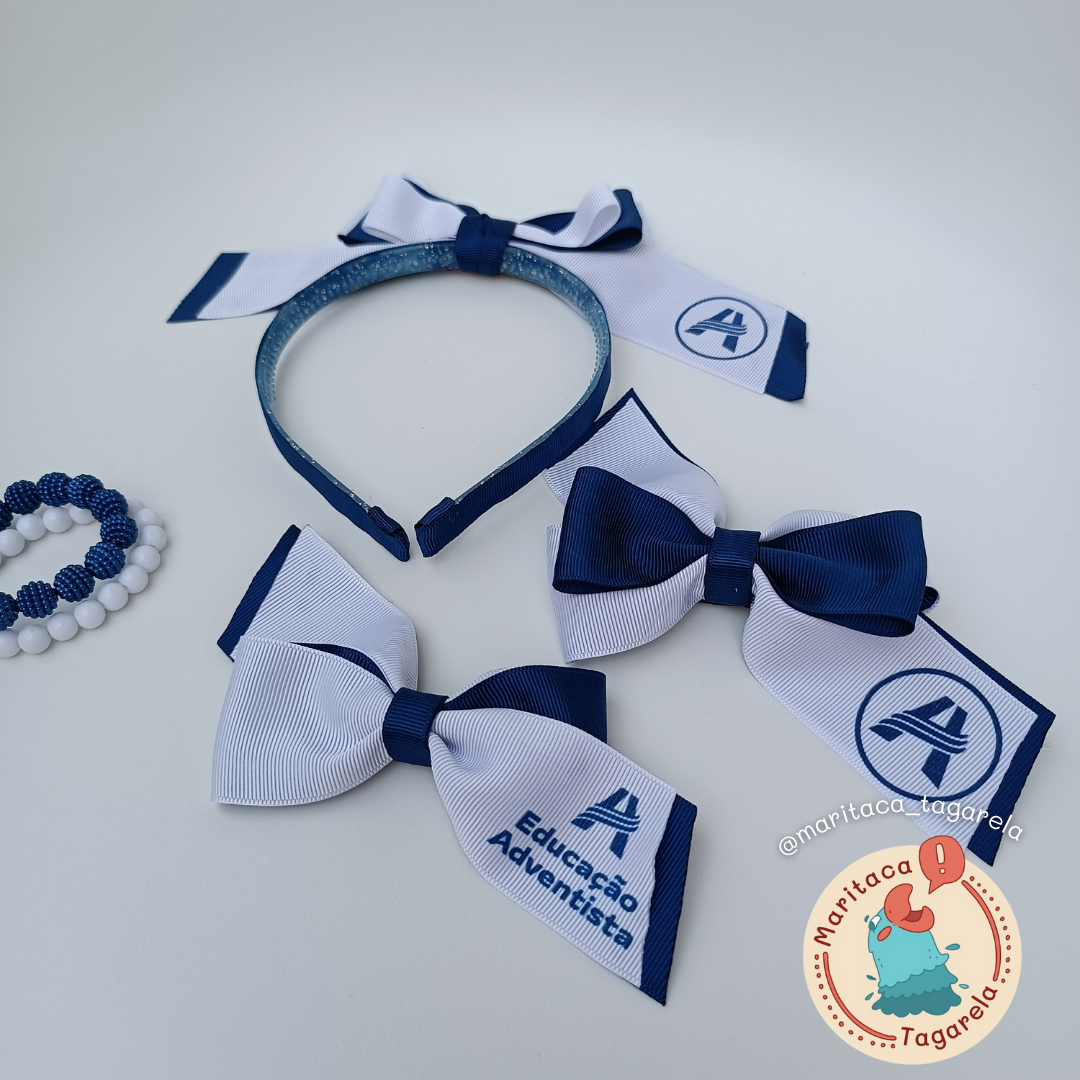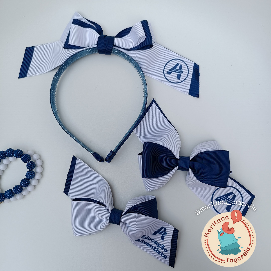 01 Tiara escolar Personalizada – Prendedor: Tiara/ arquinho – laço 16 cm